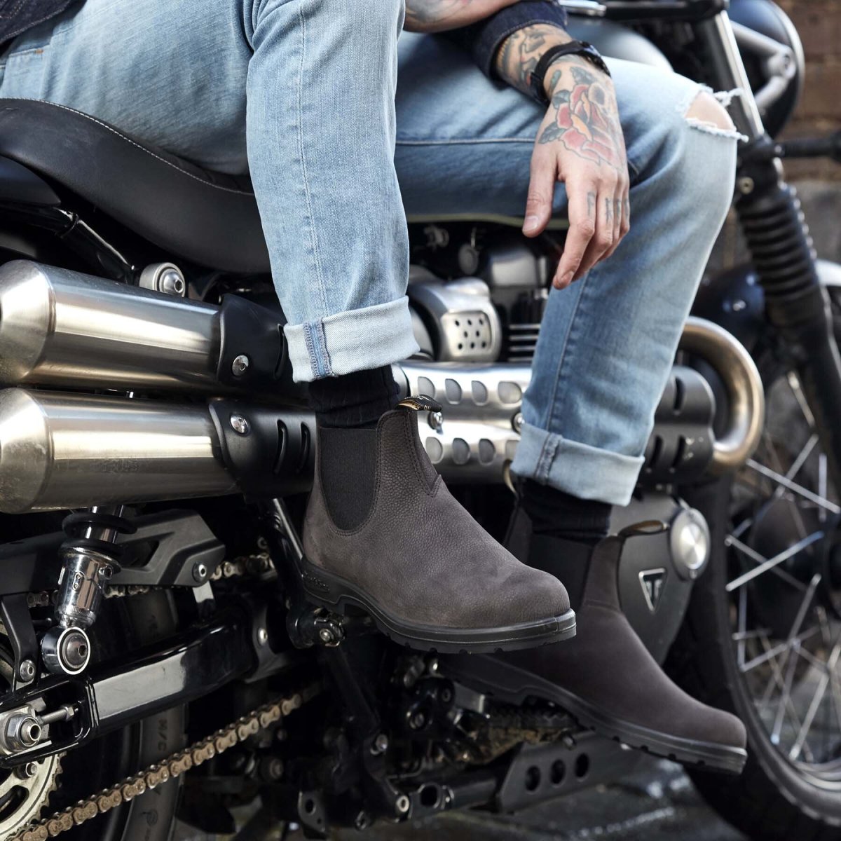 Las botas Chelsea #1464 de Blundstone están fabricadas en nobuk gris resistente al agua. Presentan una parte superior lisa con elásticos laterales, enriquecida con detalles de pespuntes delanteros y una larga lengüeta delantera y trasera para ayudarte a calzarlas. Un zapato con un look tradicional de la serie Classics enriquecido por el toque determinado de la suela dentada de goma antideslizante.